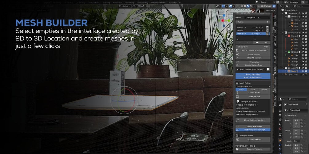 Blender 2D to 3D Location Addon - With Mesh Builder